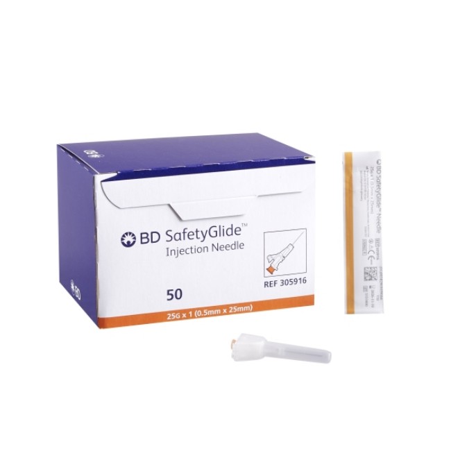 SafetyGlide Sterile Hypodermic Needles, 25G x 1 is manufactured by BD.