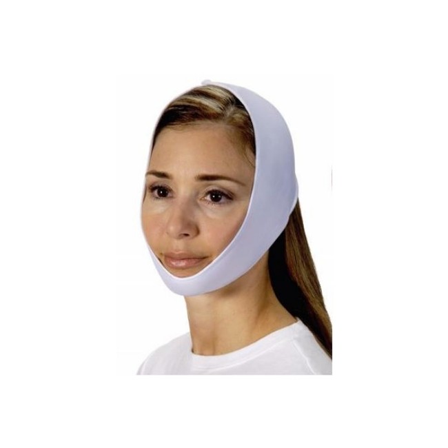 The Jobst Facioplasty Elastic Support for Ears, Cheek, and Chin provides effective pressure and support following facial surgery, including face lifts, by providing even pressure to aid in the control of post-operative swelling. Dressings and moist compresses are held in place without tape, and it can be slit to expose patients ears. The hook & loop closures are adjustable making it easy to put on without assistance. Latex Free. Blend of Nylon and Spandex.