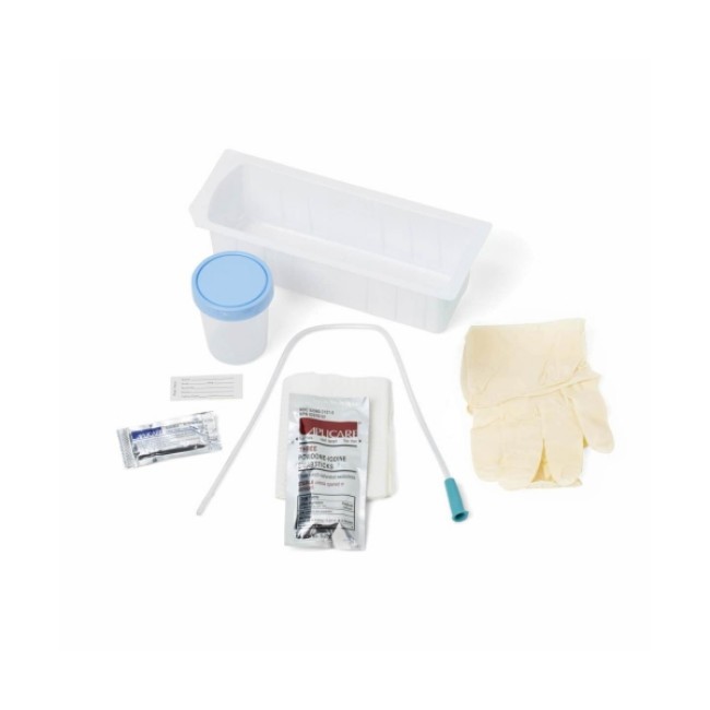 - All sterile trays include a graduated collection basin, gloves not made with natural rubber latex, urethral catheter, underpad, fenestrated drape, swabsticks, lubricating jelly and specimen container label