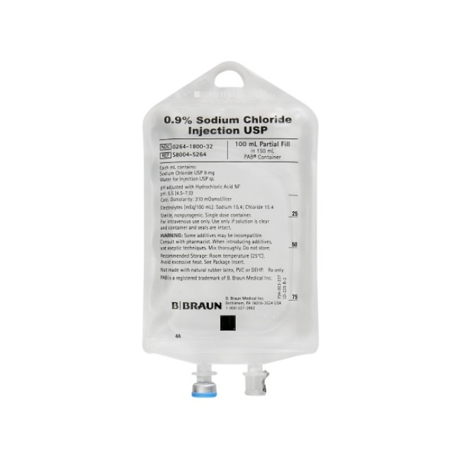 0.9% Sodium Chloride Injection USP, 100 mL Fill in 150 mL PAB® Container is manufactured by B Braun.