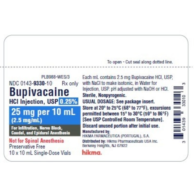 Bupivacaine: 2.5 mg Bupivacaine Hydrochloride per mL, 10 mL Single-Dose Vial, Preservative Free is manufactured by Hikma Pharmaceuticals Plc.
