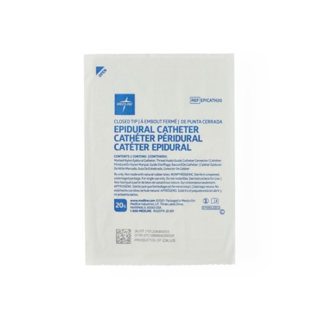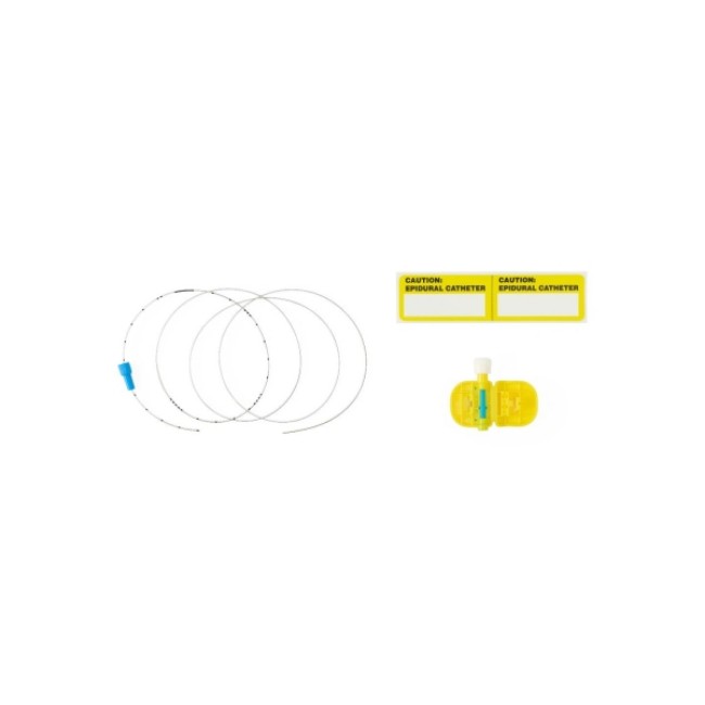 - Includes catheter connector, nylon epidural catheter, thread assist guide, yellow CAUTION labels, and instructions for use