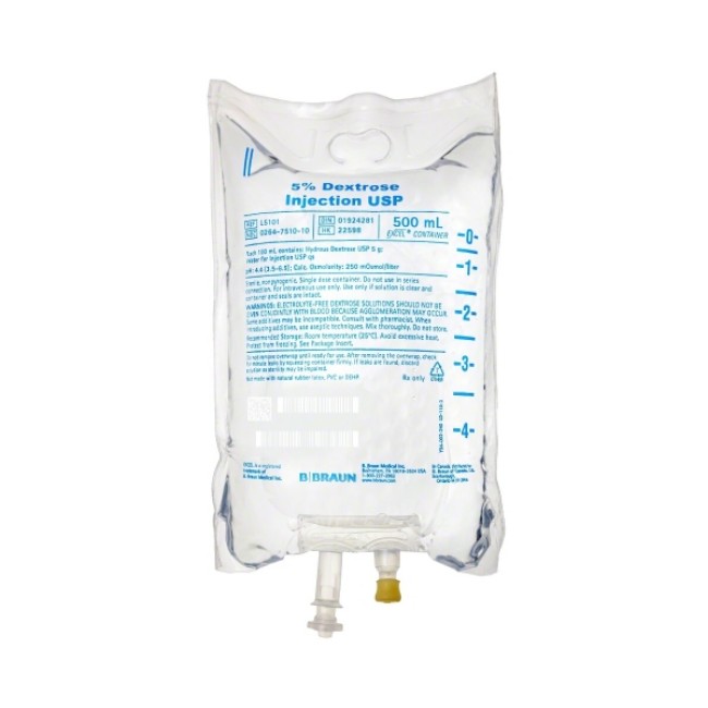 5% Dextrose Injection USP, 500 mL is manufactured by B Braun.