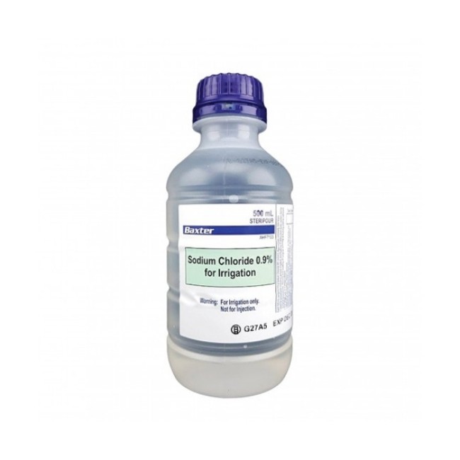 The sterile nature of the saline ensures that it is free from contaminants, making it safe for use in intravenous therapy and direct contact with bodily tissues. The packaging in a durable, easy-to-use bottle ensures that the saline remains uncontaminated and ready for use when needed. The solution is designed for single-use only to maintain sterility.