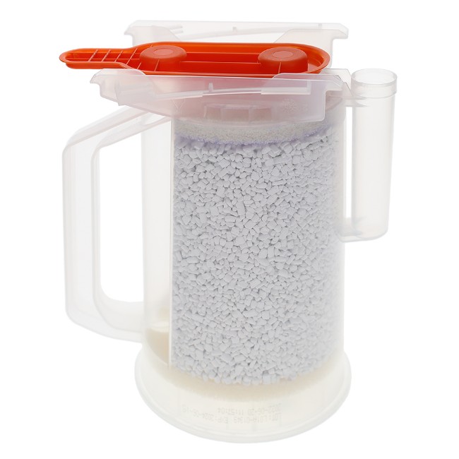 The absorbent is supplied in a cylindrical canister compatible with Aestiva™ anesthesia systems. As the pH of the material decreases below 10.3 during CO2 absorption, the cartridge undergoes a visible color change from white to violet. This feature provides a clear visual indication of absorbent exhaustion and helps clinicians monitor the effectiveness of gas scrubbing in real time.