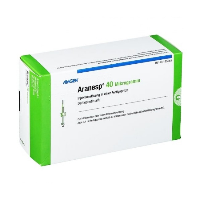 Aranesp (darbepoetin alfa) 40 mcg/mL is a recombinant human erythropoietin analog formulated as a polysorbate-containing solution for subcutaneous or intravenous administration. It is used to stimulate erythropoiesis in patients with anemia associated with chronic kidney disease (CKD) and chemotherapy-induced anemia in non-myeloid malignancies.