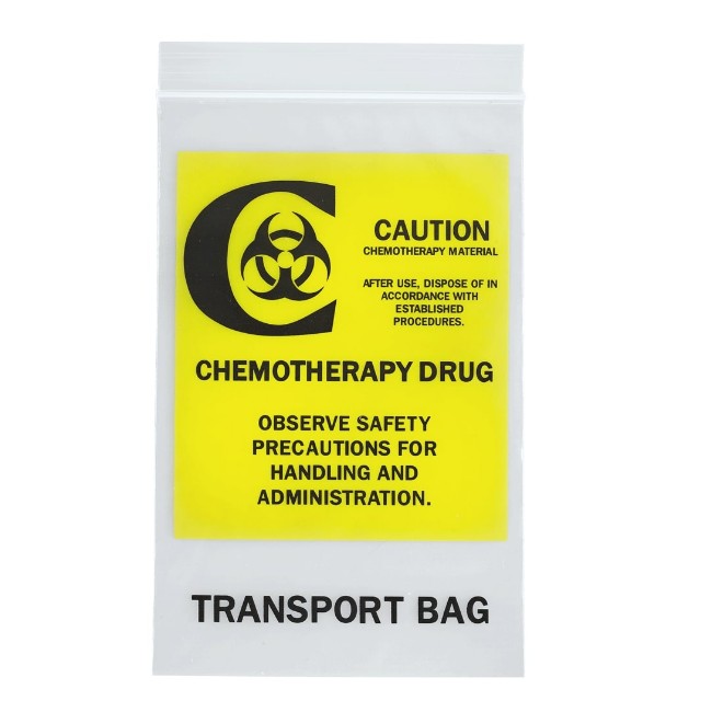 BAG CHEMO TRNP ZIP BG 6X9N 1000 is a specialized transport bag designed for the safe handling and movement of chemotherapy drugs within healthcare environments. Constructed from durable, medical-grade plastic, the bag offers a reliable solution for minimizing exposure risks during the transfer of hazardous medications. Its heavy-duty 4 MIL thickness enhances puncture and tear resistance, ensuring the secure containment of contents.