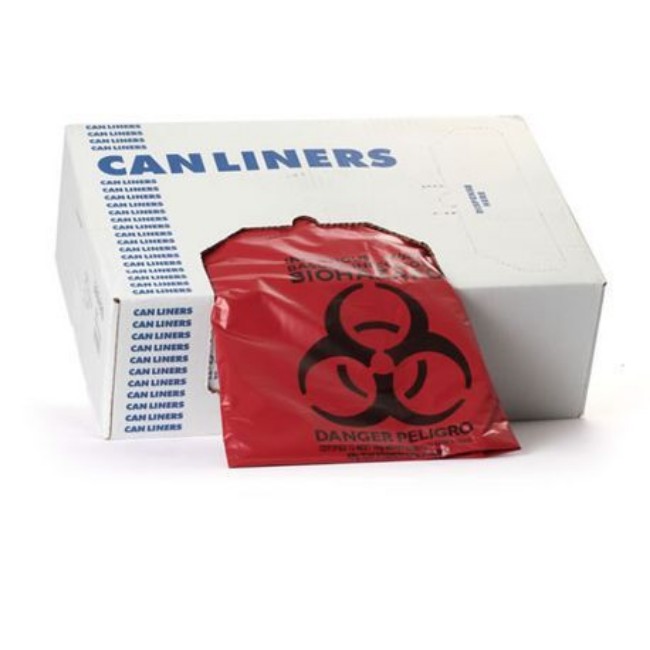 Measuring 30 inches by 43 inches, the liner offers sufficient capacity for standard healthcare and laboratory can liners. The star-sealed bottom enhances structural integrity and prevents leakage, supporting compliance with federal and state regulations for the containment of blood-borne pathogens and other biohazardous materials. The red color and printed biohazard symbol provide immediate visual identification, promoting safe segregation from non-hazardous waste streams.