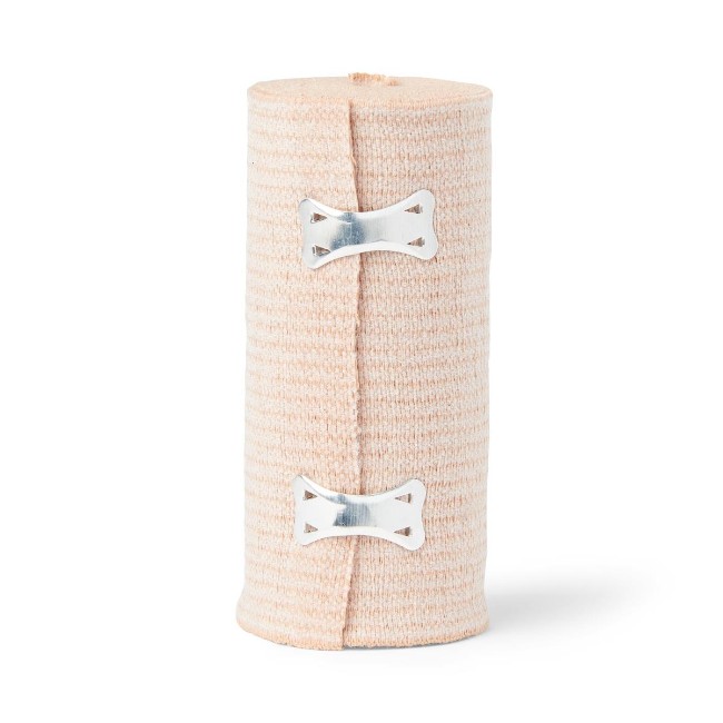 The included elastic clips provide secure closure, keeping the bandage in place during movement and activity. This feature eliminates the need for pins or adhesives, reducing the risk of skin irritation or accidental unfastening. The beige color offers a neutral, professional appearance suitable for clinical settings.