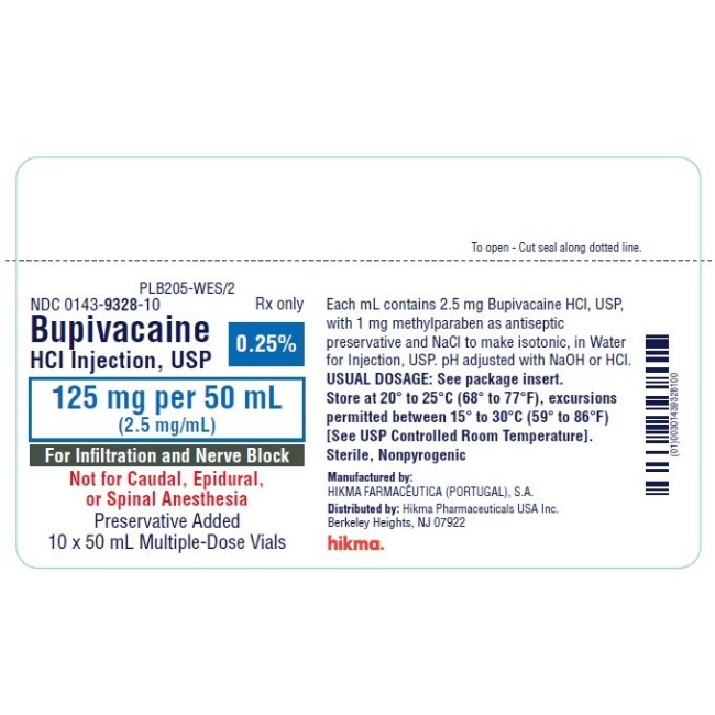 BUPIVACAINE MD 0.25% 10X50ML is manufactured by Hikma Pharmaceuticals Plc.