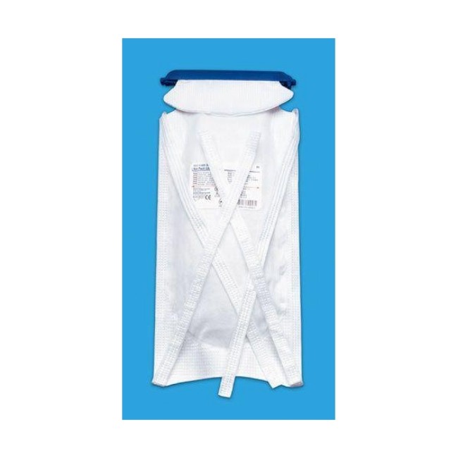 The Cardinal Health Ice Bag with Tie Attachments, Small, 5 x 12 Inch, is designed to provide effective cold therapy for pain relief and swelling reduction. Constructed with a three-layer design, the bag features a soft outer fabric for patient comfort, an absorbent middle layer that wicks away moisture, and a leak-resistant inner layer that ensures the treated area remains dry during application.