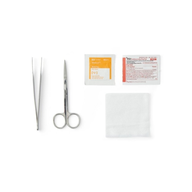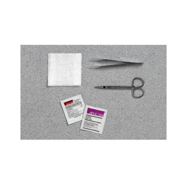 | Contents | (1) 4-1/2 Inch Straight Stainless Steel Iris Scissor, (1) 4-3/4 Inch Serrated Stainless Steel Adson Forcep, (1) 12-Ply 3 X 3 Inch Gauze Sponge, (1) PVP Prep Pad, (1) Alcohol Prep Pad |