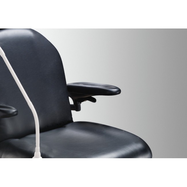 The arms feature a swivel and locking mechanism, allowing adjustment to multiple positions. They move in coordination with the chair back, including support for the prone position, providing clinicians with optimal access and patient positioning during examinations or treatments. The locking function ensures secure placement, maintaining stability throughout procedures.