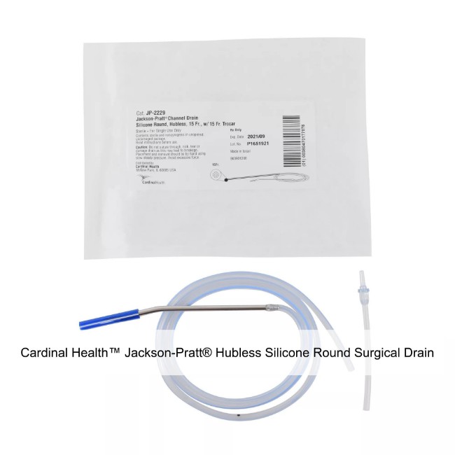 This drain features a two-piece system that accommodates both flat and round designs. The round hubless version includes a radiopaque stripe, enabling accurate x-ray visualization and monitoring of drain placement. Measuring 6 inches in length with a 10 Fr. diameter, it is suitable for a variety of surgical applications requiring controlled wound drainage.