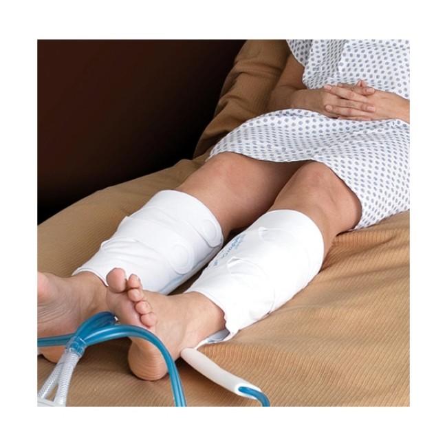 Designed as a prophylaxis for Deep Vein Thrombosis, the VenaFlow System combines two proven technologies, rapid inflation and graduated sequential compression, to accelerate venous velocity and enhance fibrinolysis. For the superior emptying of veins, VenaFlow also incorporates asymmetic compression. The breathable and comfortable calf, foot and thigh cuffs enhance the patient experience and are compatible with one universal pump. Indication: Prevention of thrombus formation