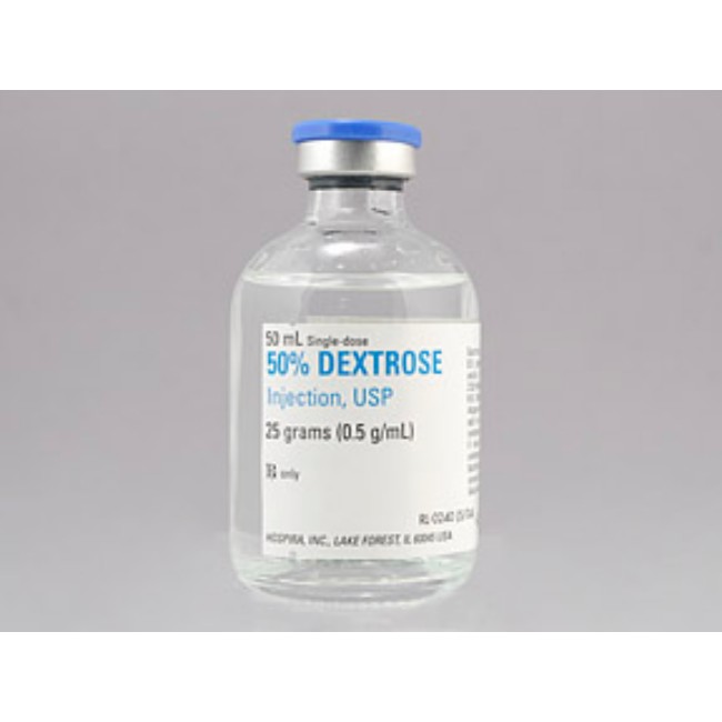 Dextrose SDV 50% 50mL is manufactured by Hospira.