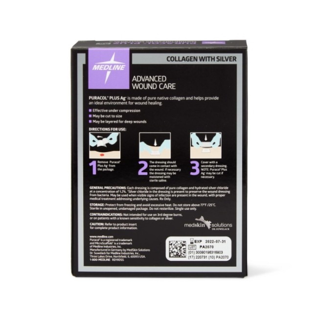DRESSING,COLLAGEN,PURACOL PLUS AG,2X2 is manufactured by Medline.