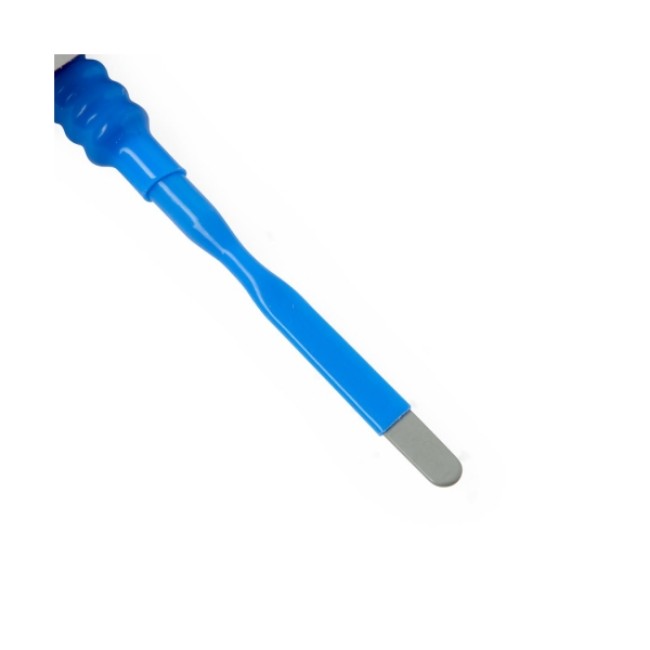 The PTFE-Coated Cautery Electrode, 2.75", Modified Blade Tip with Extended Insulation, is a high-quality disposable electrode designed for precision in surgical procedures. The electrode is engineered to resist splitting even in high-temperature environments, ensuring consistent performance throughout its use. This feature is essential for minimizing the risk of accidental damage to surrounding tissue during cauterization or other surgical interventions.