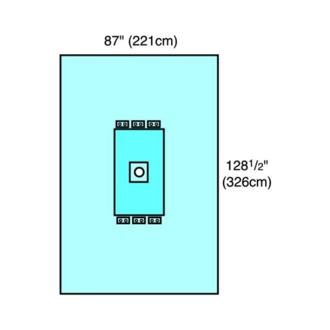 The Extremity Surgical Drape 86 in x 128.5 in Circular Fenestration 2.5 in Reinforced 30.5 in x 42 in Sterile is a high-quality sterile drape designed for orthopedic and extremity surgical procedures. It provides a reliable barrier against contamination, supporting aseptic technique and maintaining a sterile field throughout surgical interventions. Its large dimensions offer extensive coverage of the surgical area and surrounding surfaces.