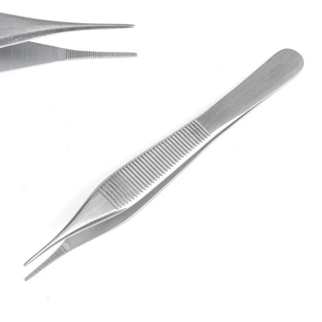 The forceps include a wide thumb handle that provides ergonomic control, allowing consistent precision during use. Manufactured from high-quality Pakistani stainless steel, the instrument ensures durability while maintaining a lightweight structure suitable for repeated handling in clinical and procedural settings. The non-locking design allows quick adjustment and repositioning without interference from mechanical locks.