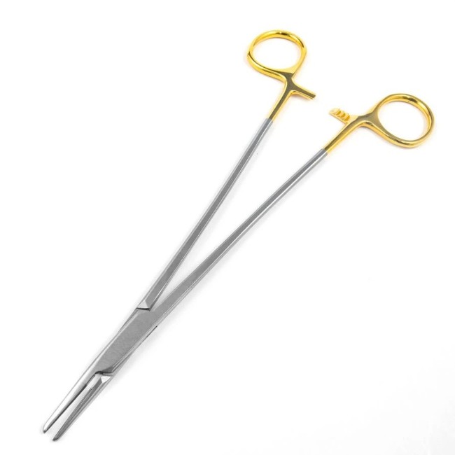 | Uses | Holding and guiding small to medium size needles, suturing in delicate tissues, enhancing needle control, reducing slippage |
