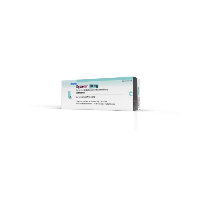 The product is presented as a lyophilized powder intended for intravenous administration after reconstitution and dilution. Each single-use vial contains 10 mg of carfilzomib, which must be prepared and administered by a qualified healthcare professional under strict aseptic conditions. The dosing regimen depends on body surface area and patient-specific treatment cycles, usually administered over consecutive days followed by rest periods.