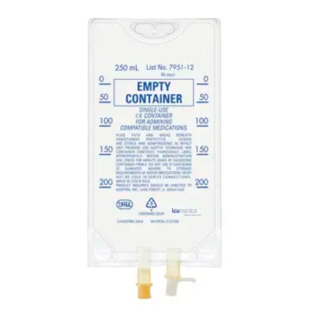 The LIFECARE FLX CTR SE 48 W/SET is a sterile, flexible medical container designed for secure fluid management in clinical and hospital environments. It has a total volume capacity of 250 mL, making it suitable for small to moderate-volume medical applications such as parenteral fluid delivery, medication mixing, and other compatible fluid handling needs.