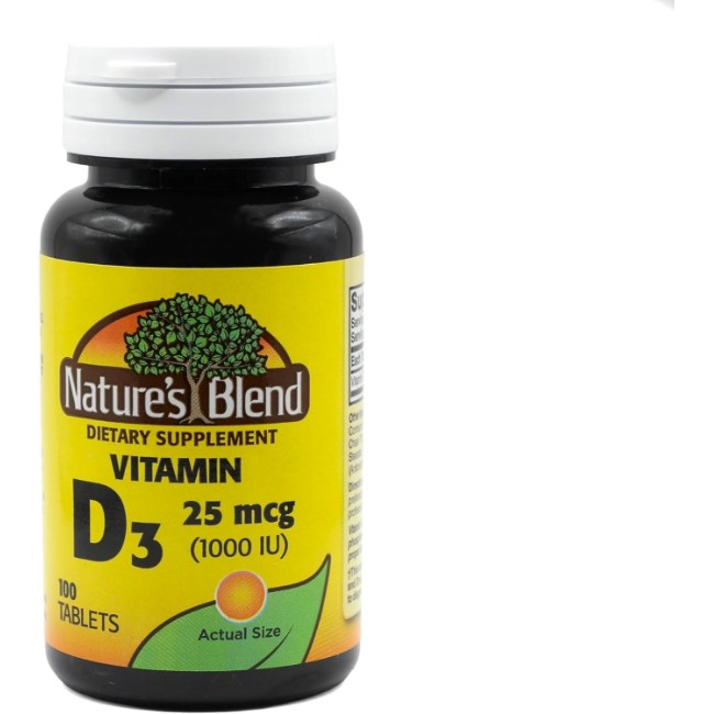 Nature’s Blend Vitamin D3 TB 1000U 100 is a dietary supplement formulated to provide vitamin D3 in a convenient tablet form. Vitamin D3, also known as cholecalciferol, is essential for maintaining adequate levels of this nutrient, especially in adults with limited sun exposure. Each tablet delivers 1,000 IU of vitamin D3 to support daily nutritional needs.