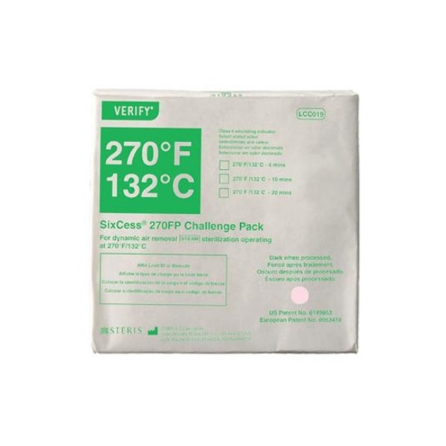 The VERIFY SixCess Extended Timing Challenge Pack contains a Class 6 Emulating Indicator* within a specially designed barrier system. This cycle specific test may be used to monitor steam sterilization cycles operating at 270 °F/ 132° C with exposure times of 4, 10, or 20 minutes. VERIFY SixCess Extended Timing Challenge Packs offer a fast, accurate and cost effective means to sterility assurance monitoring for steam sterilization loads. The VERIFY SixCess Extended Timing Challenge Packs may be used to release loads that do not contain implantable devices.