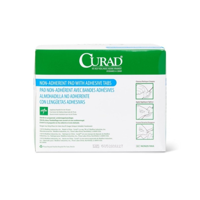 Pads, Nonadherent: Sterile Nonadherent CURAD Pad with Adhesive Tabs, 2" x 3" is manufactured by Medline.