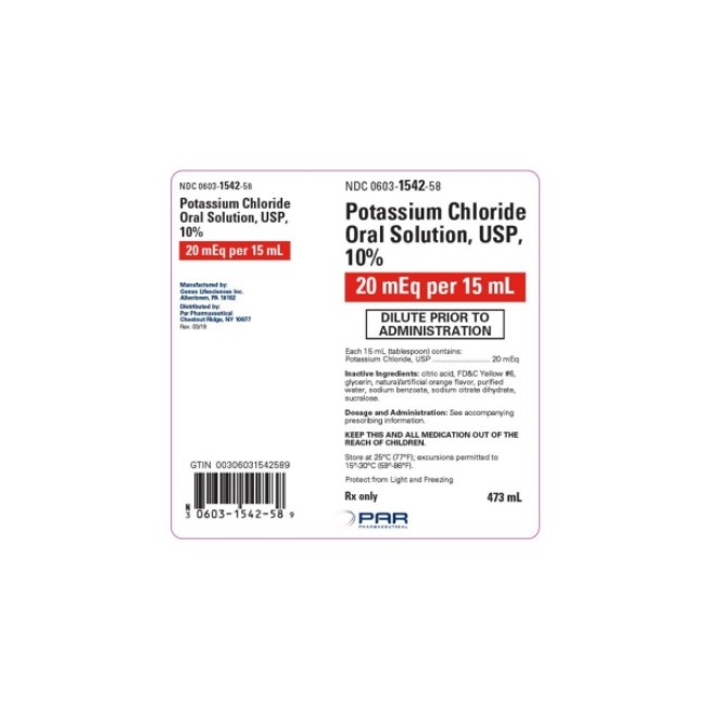 POTASSIUM CHLORIDE 10% ORAL SOLN 473ML is manufactured by PAR PHARMACEUTICAL COMPANIES, INC.