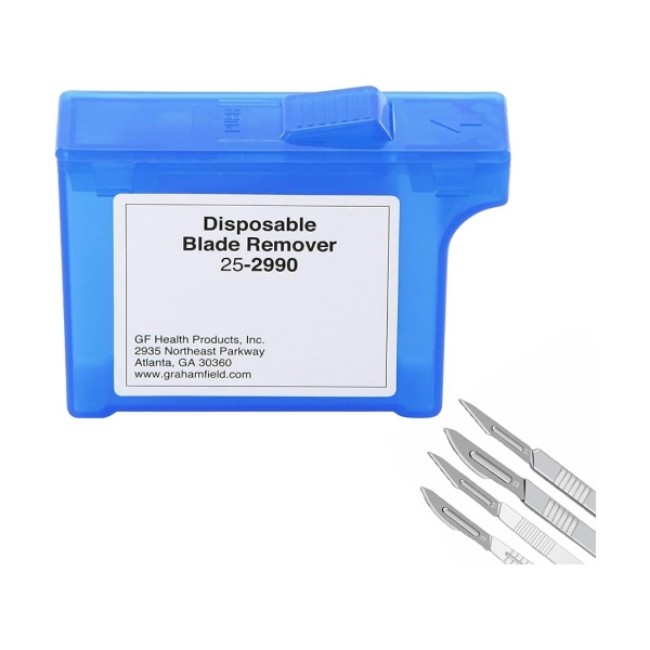Laryngoscope Removal: Feather Surgical Blade Remover, 58 mm H x 79.3 mm W x 25 mm D, 21.7 g, 150 - 300 Blade Capacity is manufactured by Graham Field.