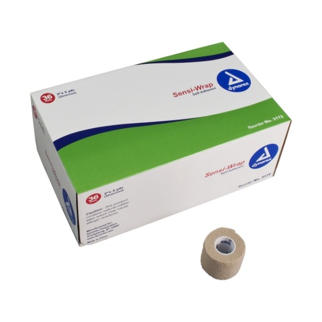 Bandages: Sensi Wrap Self-Adherent Compression Bandage, Tan, 2" x 5 yd. (5.1 cm x 4.6 m) is manufactured by Dynarex.