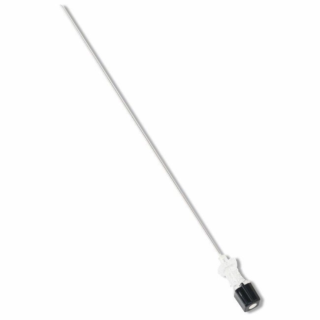 The hub is designed with a secure luer lock connection, enabling compatibility with syringes and other devices. A fitted stylet and cannula hub assist with proper needle bevel orientation, further supporting accuracy and procedural efficiency. Transparency of the hub aids in identifying fluid return, ensuring confirmation of correct needle placement.