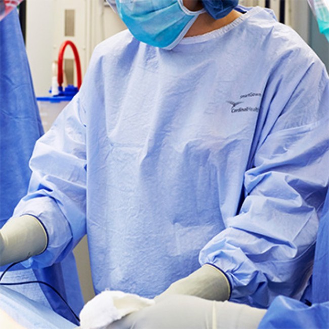 SURGICAL GOWN, SMARTSLEEVE, AAMI LEVEL 4, POLY-REINFORCED, LARGE, EXTRA LONG, SET-IN SLEEVE, NON-WOVEN, STANDARD, HOOK AND LOOP CLOSURE, LATEX FREE, STERILE is manufactured by Cardinal Health™.