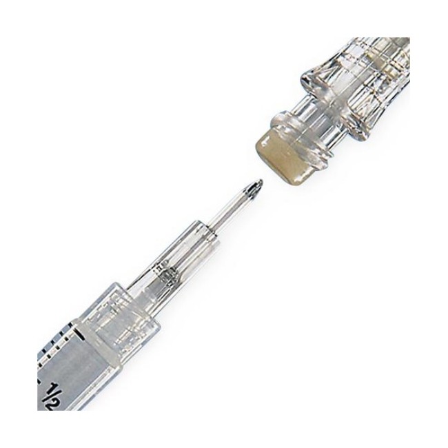 - Specifically designed for use with Interlink injection sites, identified by a colored alert ring around the septum