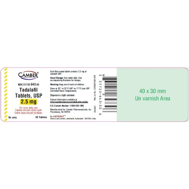 Tadalafil 2.5mg Tablet is manufactured by Camber Pharmaceuticals Inc.