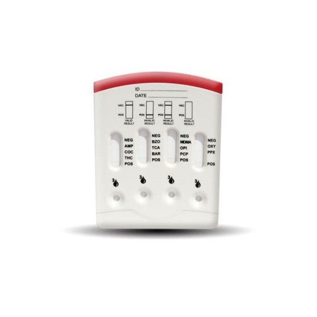 - 11 Panel iCassette(TM) drug test detects: AMP, BAR, BZO, COC, MDMA, MOP, OXY, PCP, PPX, TCA, THC