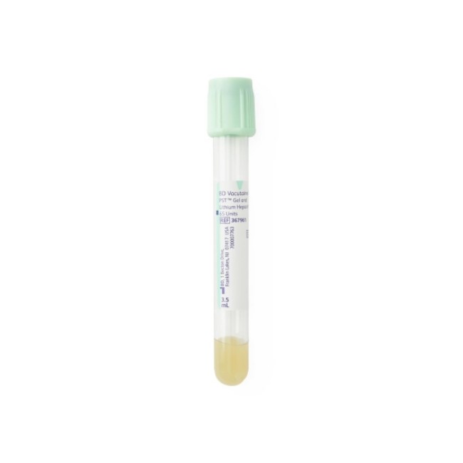 BD Vacutainer® PSTTM Tubes contain spray-coated lithium heparin and a polymergel for plasma separation. Samples processed in these tubes are used for plasmadeterminations in chemistry. BD Vacutainer® PSTTM Lithium Heparin Tubes eliminate theneed to wait for a clot to form, making it an ideal tube for STAT procedures, as wellas for patients receiving anticoagulant therapy. They provide the convenience of gelseparation with the added advantage of improved turnaround time.