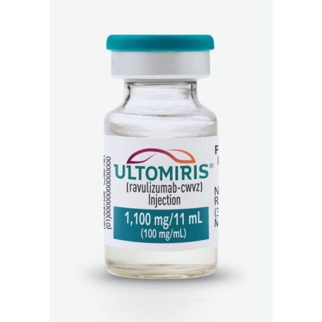 Ultomiris 1100 mg/11 mL vial is a sterile, preservative-free, concentrated intravenous formulation containing ravulizumab-cwvz, a long-acting monoclonal antibody. It is indicated for the treatment of adult and pediatric patients with paroxysmal nocturnal hemoglobinuria (PNH) and atypical hemolytic uremic syndrome (aHUS) to inhibit complement-mediated thrombotic microangiopathy.