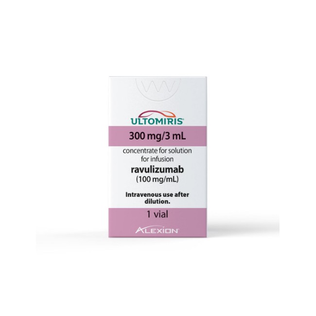 Ultomiris 300 mg/3 mL vial is a sterile, preservative-free, concentrated intravenous formulation containing ravulizumab-cwvz, a long-acting monoclonal antibody. It is indicated for the treatment of adult and pediatric patients with paroxysmal nocturnal hemoglobinuria (PNH) and atypical hemolytic uremic syndrome (aHUS) to inhibit complement-mediated thrombotic microangiopathy.
